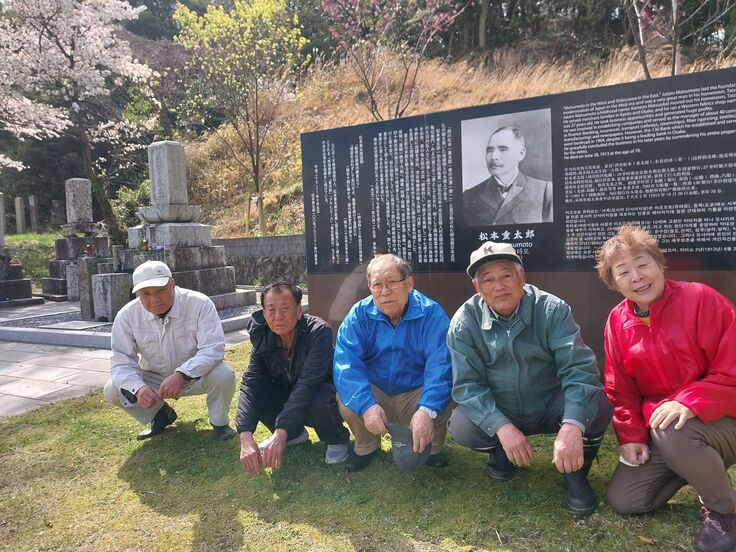 そして松本重太郎翁没後100年法要に参列し、常喜院さんにあります松本家の位牌堂を拝観させていただき重太郎翁の功績が目に浮かび心が躍りました。その事がきっかけとなり、地元間人で松本重太郎翁の功績を次世代につなぐ活動が始まり、今では墓地公園が整備され高台から桜と海を見渡せる季節と、生誕の日に清掃活動をして重太郎翁を忍んでおります。また重太郎翁ミユージアムが小さいながらも完成し、重太郎翁から学ぶ「公に尽くす」企業経営の核心「貢献教育」をテーマに旅で探究心を学ぶ教育旅行プログラムを完成させ、日本の担い手を京丹後からと発信しています。