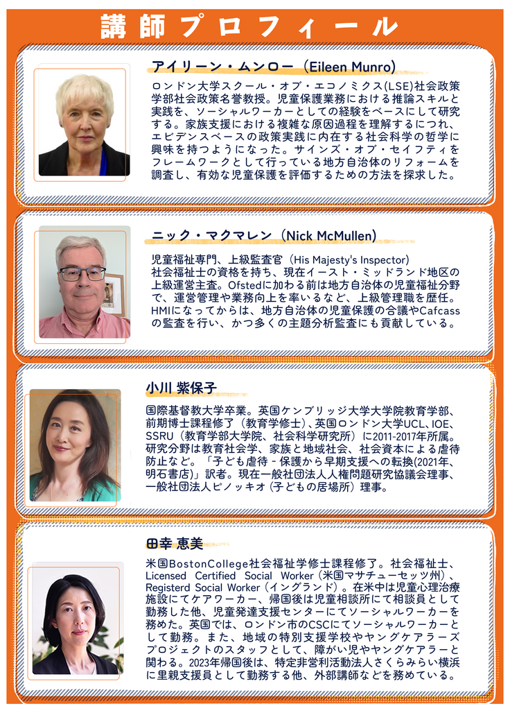 豪華なゲストをお招きし、イギリスにおける児童福祉のシステムと第三者評価について学ぶ貴重な機会となっております。