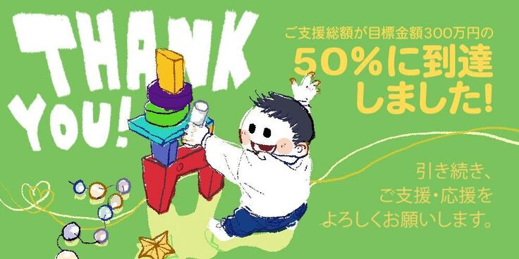 クラウドファンディング開始から19日目の本日時点で、寄付総額が目標の50%、150万円に到達しました!ご支援いただいたみなさま、誠にありがとうございます。