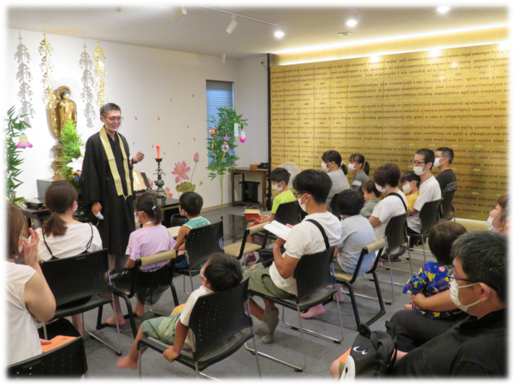 みんなで本堂に集い、お勤めをしてから、七夕飾りや縁日を楽しみました!