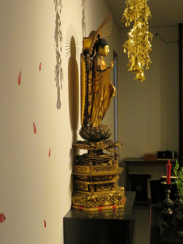 当寺院のご本尊である阿弥陀如来像は、法人設立当時にお檀家様から集めた寄付によって、京都の仏具店よりお迎えしたものであると伺っております。