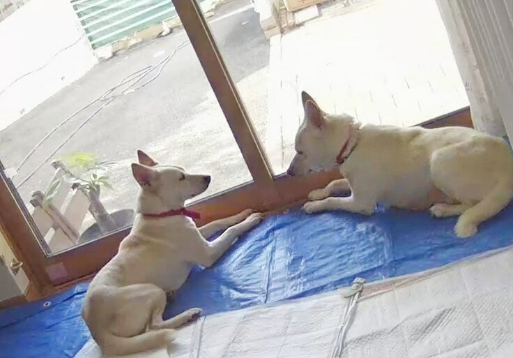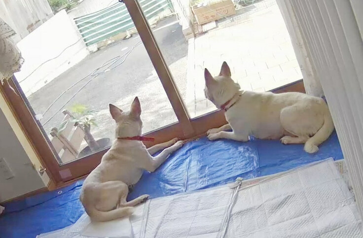 2匹仲良く並んで、お外を眺めています。