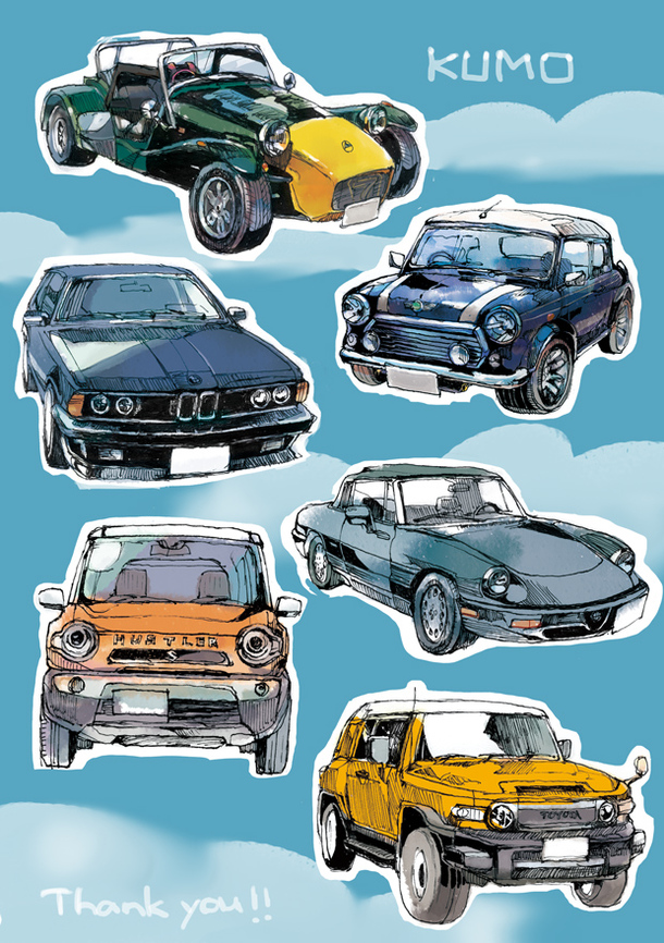 フリースペース出身の美大生が作成した車と雲のステッカー(A5版)切り取っても、そのままでもお使いいただけます。