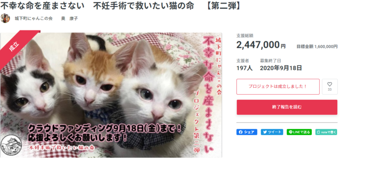 助けるためには一匹でも多くの猫に不妊手術をしてあげて
