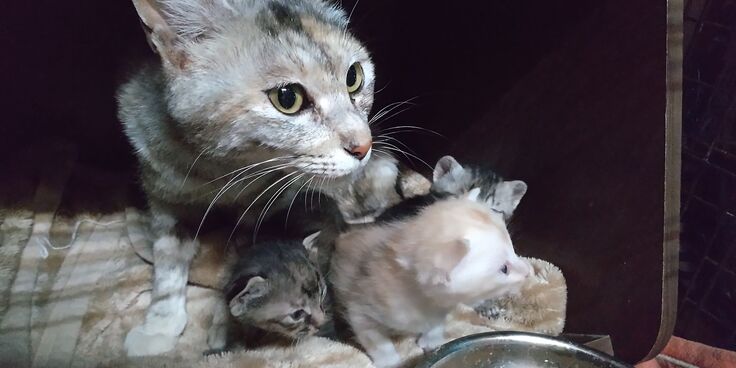 大学病院敷地内で出産し路頭に迷っていた母子猫