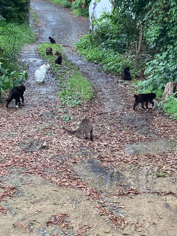 ねこたちを可哀そうに思い ひもじいだろうとご飯をあげる