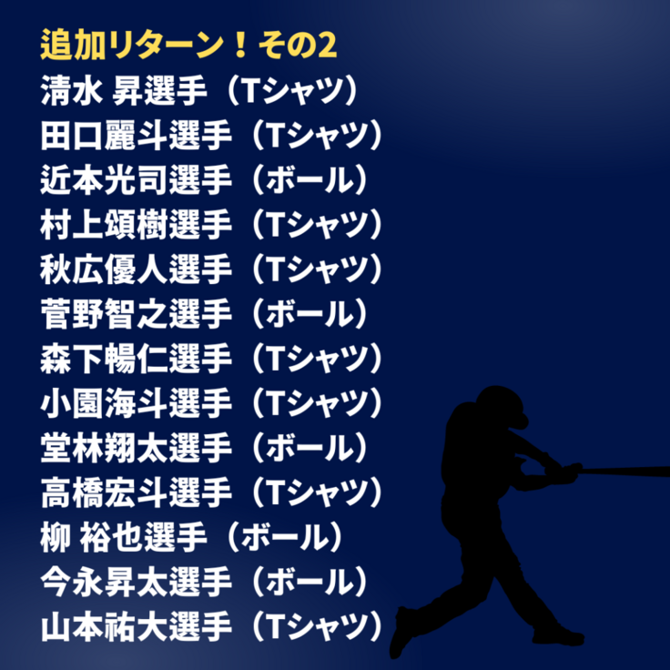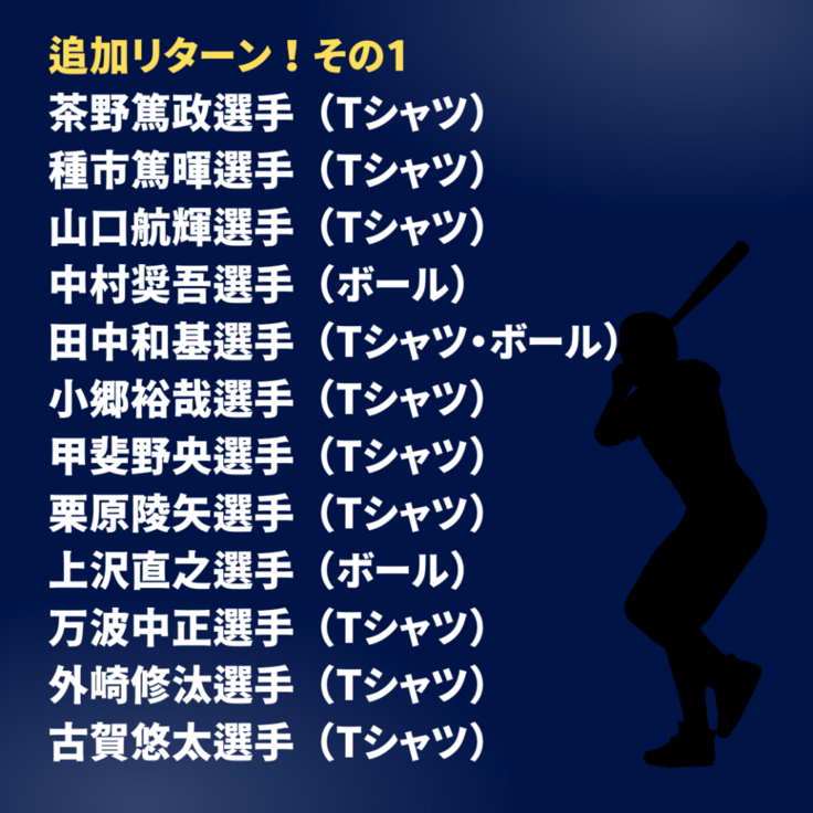 気になる追加リターンの選手を以下にてご紹介いたします。
