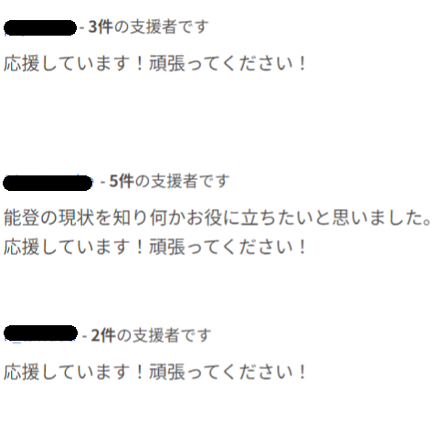 皆さまからの温かいコメントやメッセージから私たちは励まされ