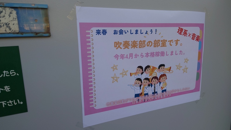 「この部屋が吹奏楽部の部室です!」のニュアンスで張り紙をしてみました。