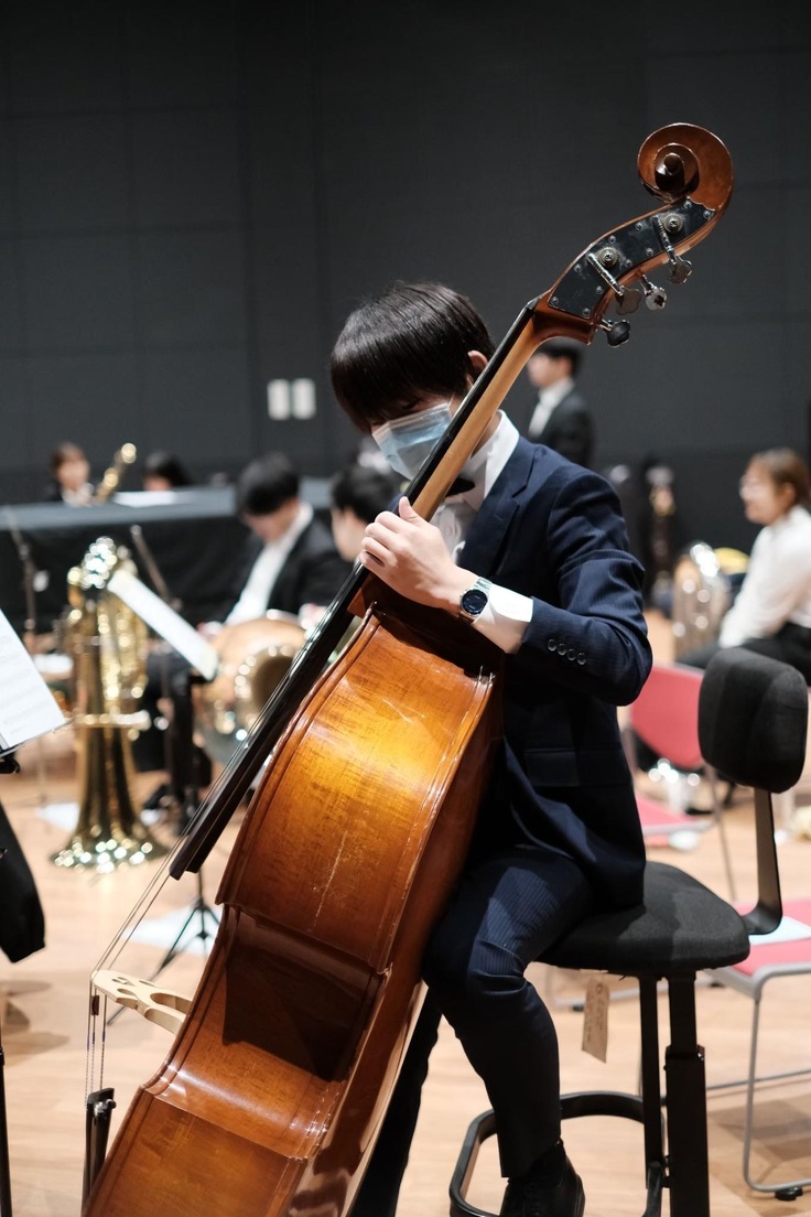 私が吹奏楽部で担当しているのはコントラバスです。吹奏楽で唯一の弦楽器であり、全体を支える縁の下の力持ちでもあります。コントラバスにしか生み出せない芳醇で豊かな響きを、ぜひ演奏会で感じていただけたら嬉しいです。高校の吹奏楽部からコントラバスを始めましたが、もともと弦楽器を演奏していたこともあり、コントラバスを選びました。好きな曲はたくさんありますが、吹奏楽やクラシックではワルツが特に好きです。