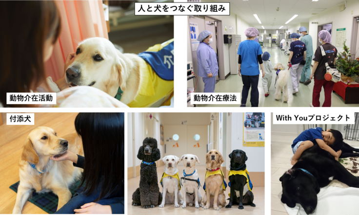 私たちは、「人にも動物にもやさしく楽しい社会をめざして」をモットーに手足に障がいのある方の日常生活をサポートする介助犬の育成・普及啓発活動を行っています。 また、人と犬をつなぐ「Dog Intervention(犬による介入)」の取り組みとして、動物介在活動・動物介在療法、虐待や性被害を受けた子ども達に寄り添う付添犬、そして、発達障がいや知的障がいなど様々な障がいを抱える方のご家族へ犬を譲渡する「With Youプロジェクト」などの取り組みを行っています。