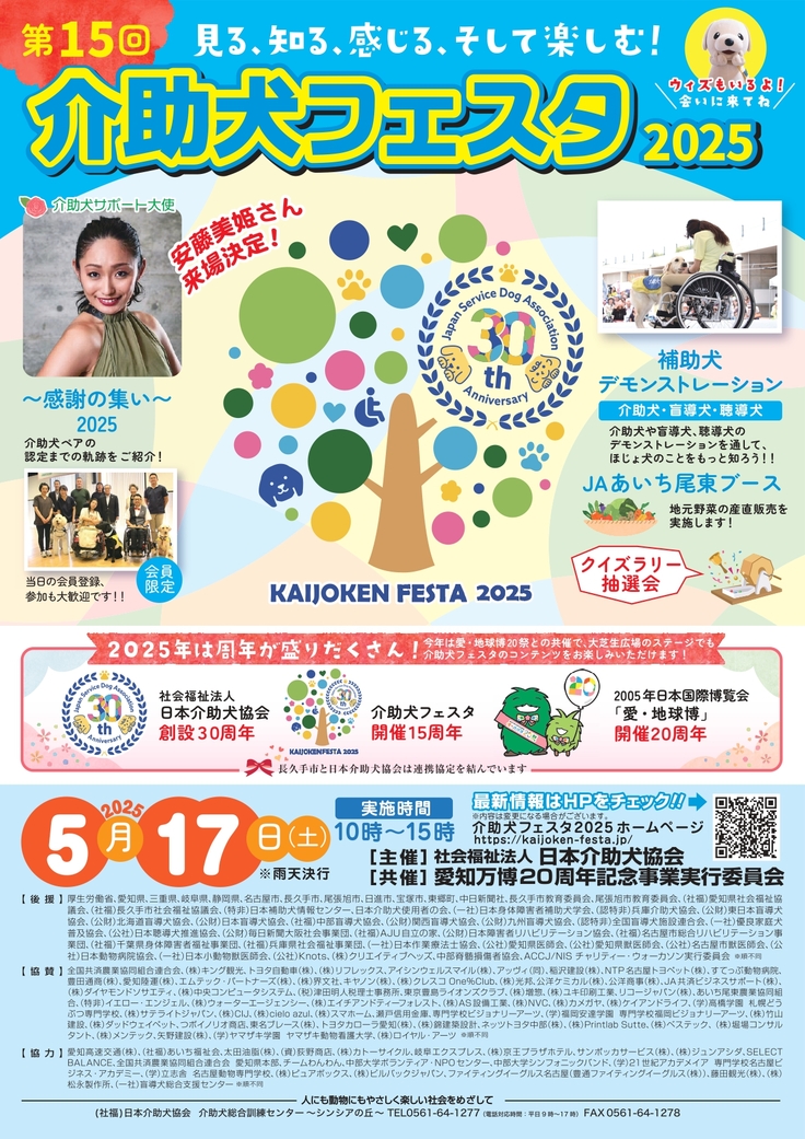 愛知万博20周年記念事業実行委員会との共催で介助犬フェスタを開催いたします。