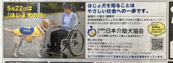本日、中日新聞 朝刊に「ほじょ犬の日」に関する広告が掲載されました。