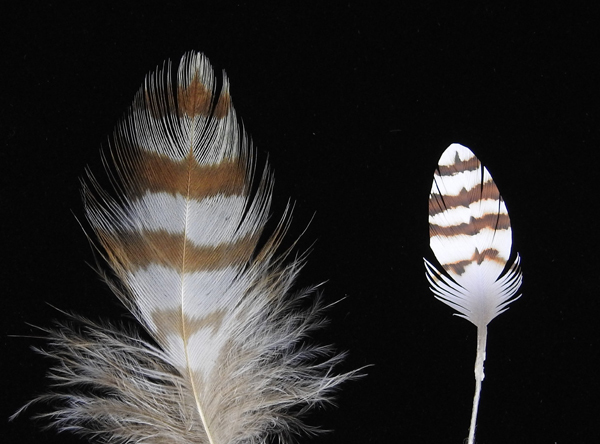 サシバの羽根を模写した羽根のアクセサリーです。アマミヤマシギのクラファンのときと同様に、栃木屋工房さんで作っていただきました。