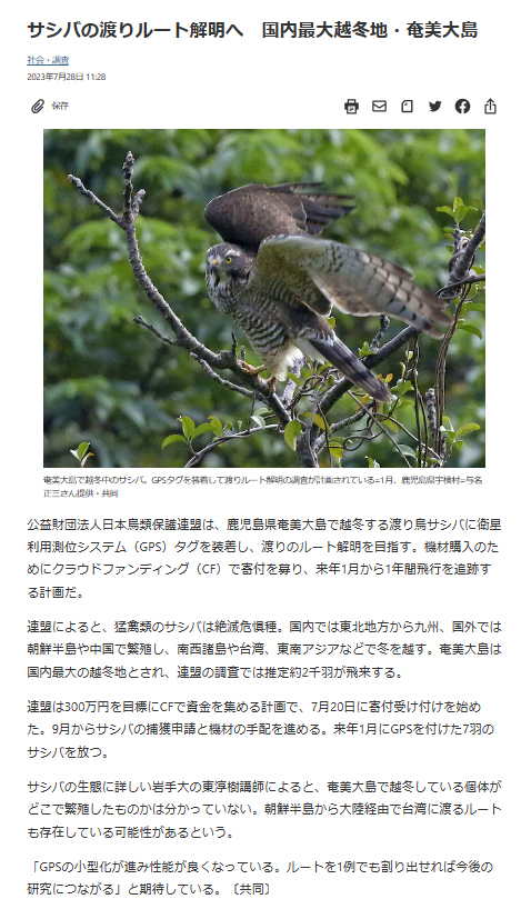 ※詳細は<活動報告記事:リターンにサシバのタオルが加わりました!>をご覧ください。