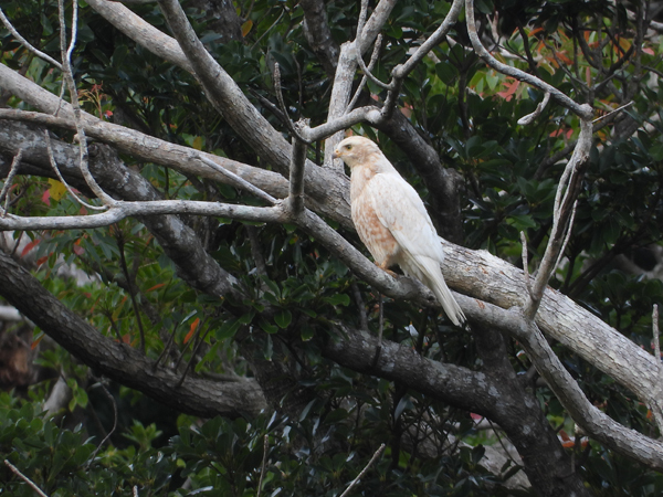 色素欠乏のアルビノとは違い、茶色が少し残っているので白変個体と思われます。奄美大島で冬を越したこの個体は、その年以降、奄美大島で確認されていません。戻ってこなかったのか、それとも羽根が抜け替わって白くなくなってしまったのか。