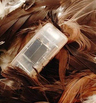 今回安全性を考えて背中ではなく腰に装着しましたが、思っていたよりも隠れてしまう感じです。サシバはトビよりも小さいのでもっと露出すると思いますが、下にウレタンなどの素材で底上げしたり、ソーラー部分が露出するよう、数枚体羽を切る必要もあるかと感じています。