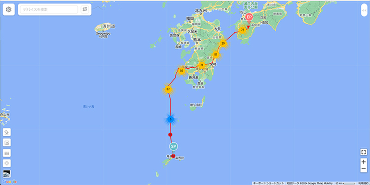 残る個体は川上①と②でしたが、川上①も動き出しました!バッテリーが不足してしばらく通信できていませんでしたが、通信が来たと思ったら川上②を追い抜かす勢いです。