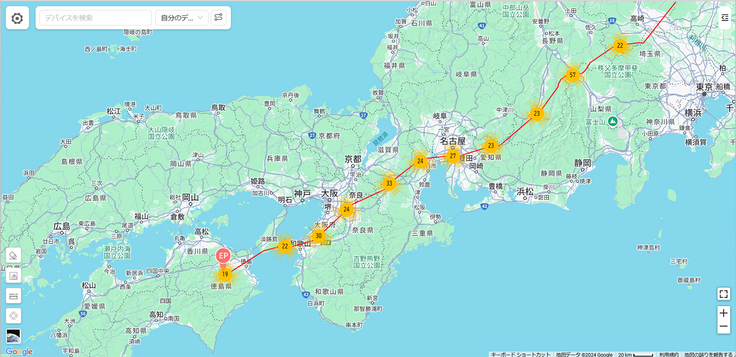 宇宿①と②も移動をしていますが、川上勢①②③は途中でくつろいでいます(苦笑)。宇宿③は今日はデータ受信がありませんでしたが、昨日はまだ川越市から動いていませんでした。