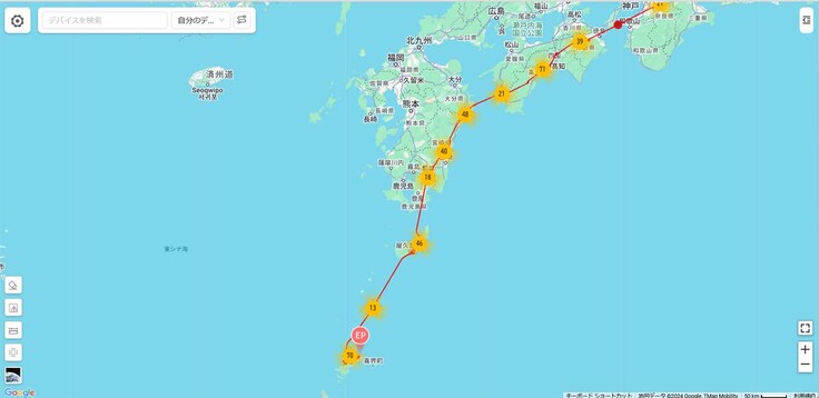 宇宿③は昨日データが来なかったのですが、一気に奄美大島にたどり着きました。宇宿③も捕獲地にピンポイントに到着です。昨日到着した龍郷小の個体も捕獲地に戻りました!