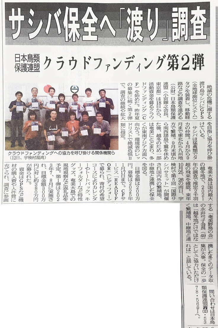 クラウドファンディングのことが11月22日付の奄美新聞で紹介されました。
