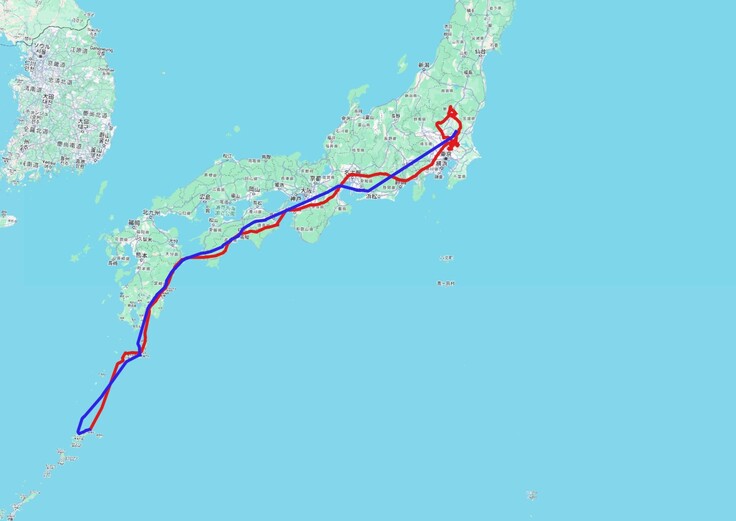 川上①はメスの幼鳥でした。4月17日に奄美大島を離れた川上①はだいたい17日間かけて九州、四国、そして太平洋岸寄りを通って関東平野に入りました。若い個体ということで真っすぐ繁殖地に向かったという感じではなく、関東に入ってから迷走が始まります。北は栃木県の那須のあたりまで行き、下は埼玉県の越谷までぐるっと回った後、最終的には茨城県の筑波山の北側あたりで定着。。と思ったら栃木県まで北上してまた戻ってくるというように落ち着きのない感じでした。繁殖はしていなかったと思われます。