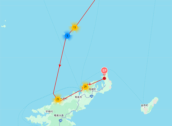 そして9月24日に移動開始!どんどん越冬地に向かって移動し、奄美大島一番乗りかと思われたのですが、種子島がよほど気に入ったのか種子島で滞在。他の個体にどんどん抜かれても種子島に滞在し、10月12日やっと奄美大島に戻ってきました。