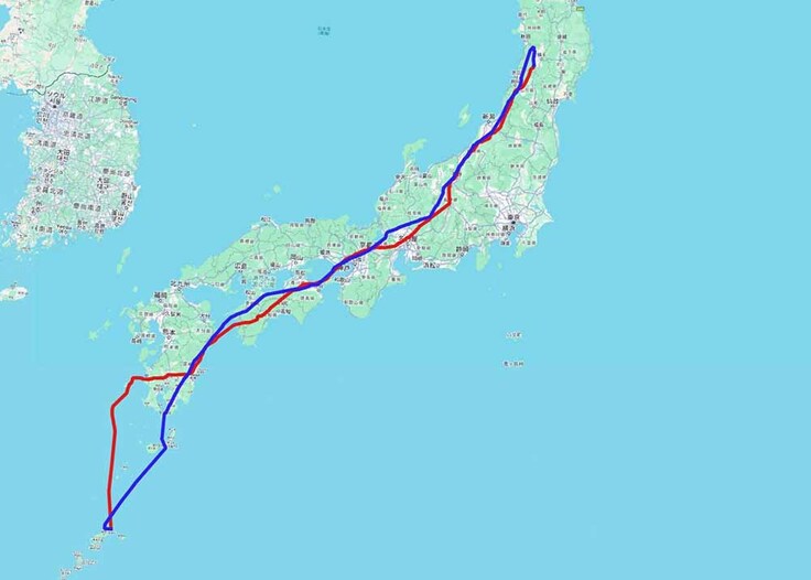 4月11日に離島してからは、海上を北上したので、もしかしたら韓国に!?と期待したのですが、まさかの90度方向転換(涙)。その後は他の個体と同じく四国に入り、16日間かけて秋田県雄勝郡に到着しました。トレース上の移動距離は1805.4km。そのときは既に4月27日で、こんなに遅く到着して繁殖できるのかと思いましたが、もしかするとこの地区は稲作の開始時期が遅い場所で、早く行っても繁殖が開始できないなどの利用もあったのかもしれないと想像しています。