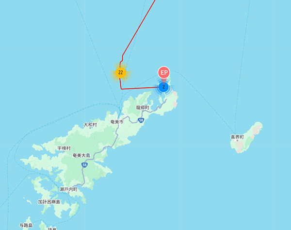 島の到着するときは少し西側に来てから元の場所に向かいました。最後の西から東への移動に1時間かかっていますから、もしかしたら一度島に上陸してから戻っているかもしれません。