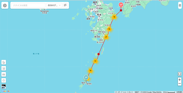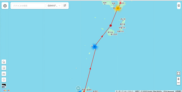龍郷小が四国に入りました。宇宿①も頑張っているようです。三鳥屋も九州入りですね。湯湾も龍郷か笠利で栄養補給しているのかと思いましたが、1泊だけして旅だったようです。23日には離島し、中之島で1泊。24日の夜には九州で最終データとなっています。もしかしたらもう四国かも。