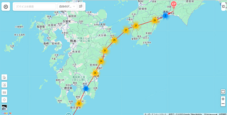 新たな個体の動きはありませんでしたが、先に出発した5羽は順調に移動しています。