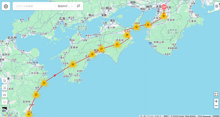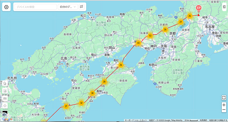 昨日、今日と天候は芳しくないですが、先に出発した5個体からはデータが送らてきました。龍郷小個体はほとんど動いていなかったようですが、今日は雨雲も通過したようなので動きがあるかもしれないですね。