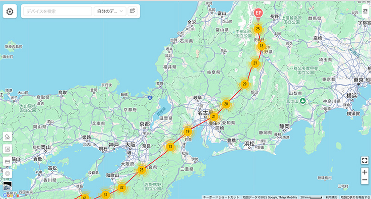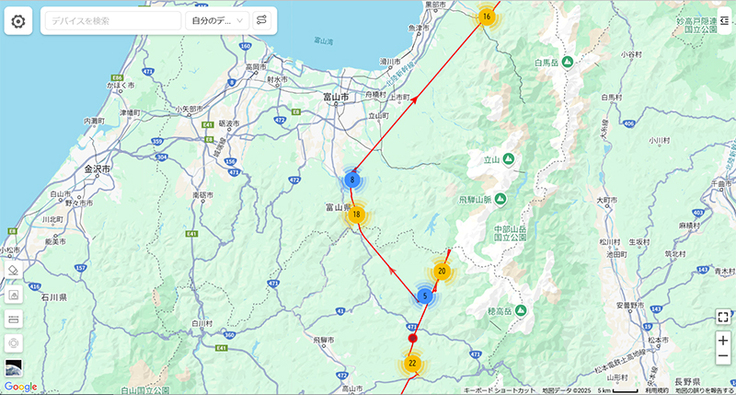 宇宿①は昨年と同じ場所に向かっています。昨年は北アルプスと中央アルプスの間を抜けていったのですが、今回は北アルプス越えにチャレンジしたようです。チャレンジしたのはお昼ごろですが、富山県富山市で10℃を切っていたときなので、2000mを超える山々は氷点下。あきらめて迂回したようです。無理をせず迂回したのは正解だったと思います。無事繁殖地に向かえてよかったです!