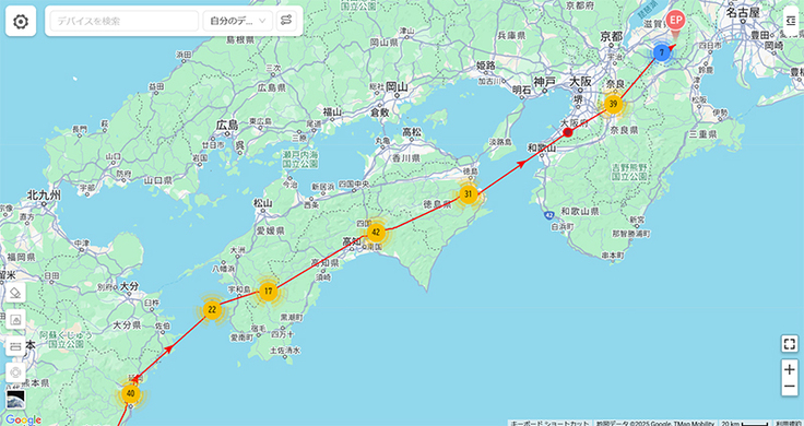 先に出発した個体では宇宿①と三鳥屋が先に進みました。
