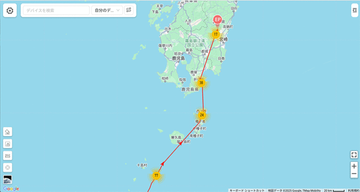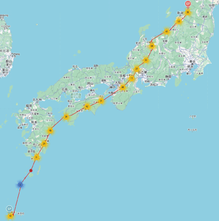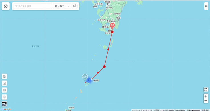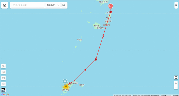 湯湾(ゆわん)については変わらず同じ場所でウロウロしているので、今いる場所を終着点としました。3月22日に移動を開始し、奄美大島の北部で1泊して3月23日に離島。そして4月5日に新潟県の現在の場所に到着となりました。移動日数は14日間です。ゆっくりとした移動でしたね。