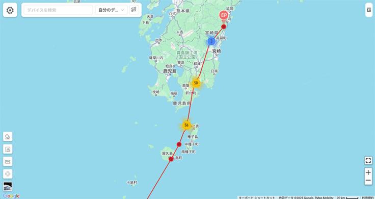 今日はスイセイと阿室(あむろ)①の移動が確認できました!これで今年装着した個体で奄美大島に残っているのは部連(ぶれん)①と名柄(ながら)の2個体となります。無事全個体が海を渡って繁殖地にたどり着いてほしいですね。コテツは受信はあったのですが、新しいデータは入っていませんでした。残念。。