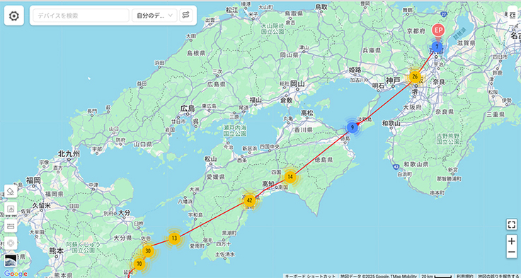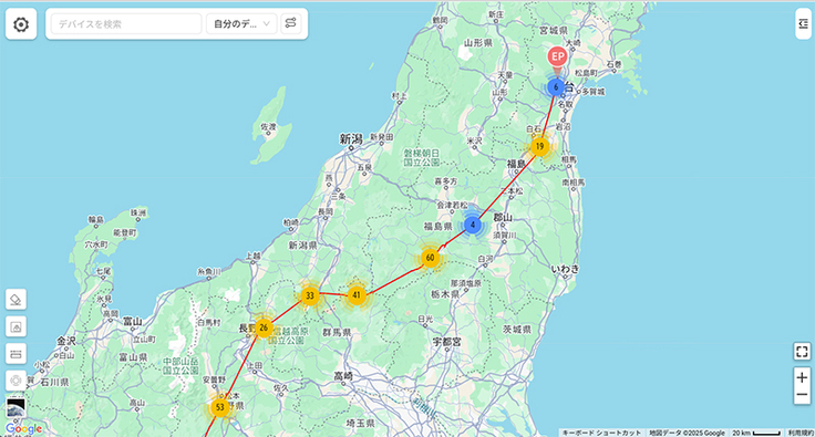 生勝③は長野県で止まっていて、こちらもおそらく終着点のようですが、行動範囲が広めなのでもう少し様子を見たいと思います。