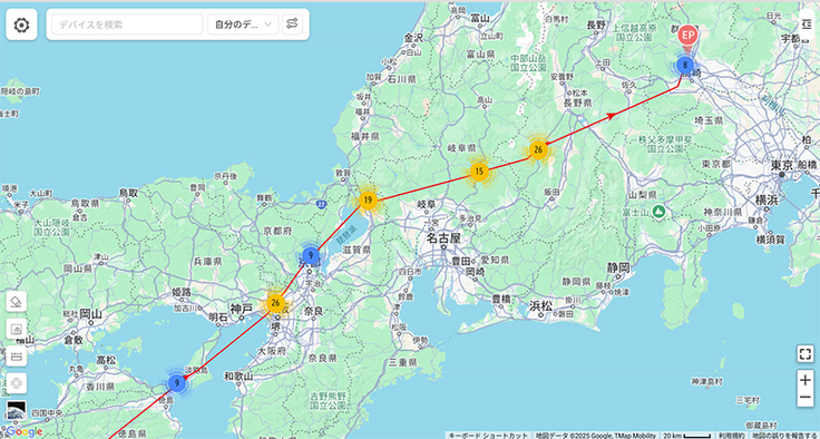 コテツは岩手県に入った後、昨日と同じ場所をウロウロしています。かなり狭い範囲を動いているので、終着点かも知れません。もう少し様子を見たいと思います。