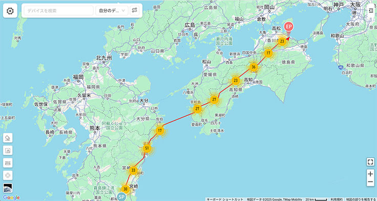 川上②が動き出しました。まだ四国から出ていませんが、ようやく発進です!