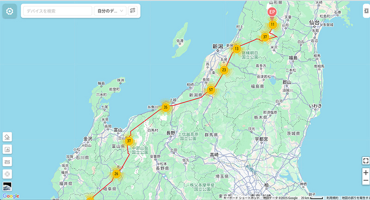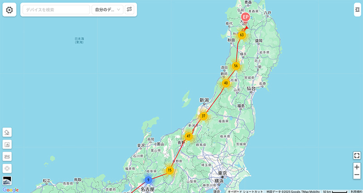 ツムグは今日も同じ場所にいるので到着とします。4月17日到着で12日間かけて山形県まで来ました。お疲れ様です!