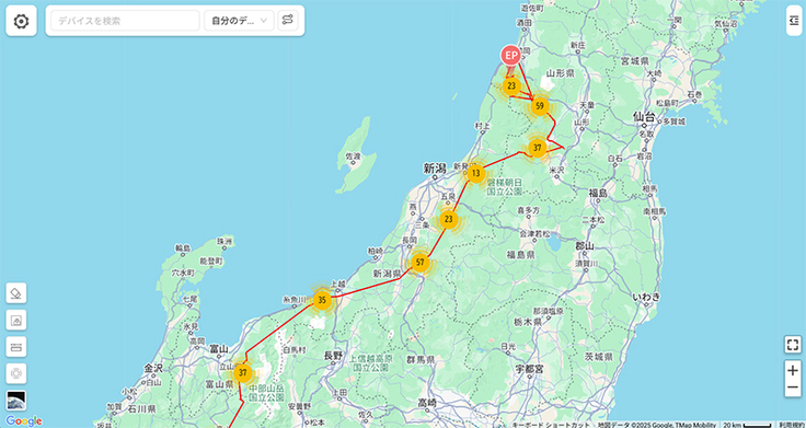 阿室①からデータが来ましたが、こちらも山形県に入ってから迷走している感じがありますね。もう少し様子を見ていくことになりそうです。