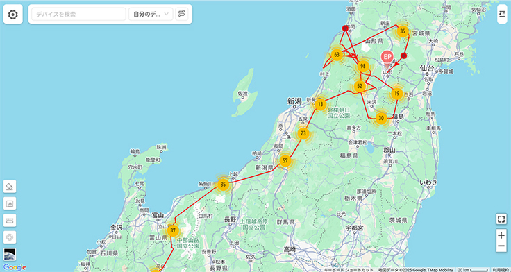 阿室①は迷走が止まりません。阿室③のように同じ場所を行ったり来たりではなく、迷走という言葉がぴったりくるような動きです。阿室③は本日はデータ更新なし。両個体ともどこかに落ち着いてくれればいいのですが。