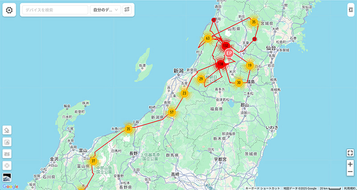 スイセイは今日は昨日と同じ場所にいます。もしかしたら目的の地に到着したのかもしれません。もう少し様子を見て、移動しないようであれば到着としたいと思います。