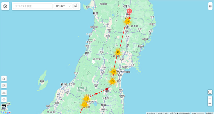 阿室①は福島からまた西に50kmほど戻りました。繁殖地に落ち着かなければいけない時期に毎日何十キロも移動するのはどうしてでしょうね。