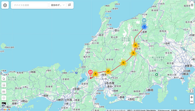 龍郷小は思ったより動いていませんでしたが、琵琶湖まで到達しています。今回は琵琶湖の南側を進む感じでしょうか。