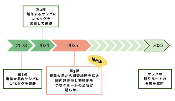 これまでのプロジェクトは、国内の越冬場所としては最北端となる奄美大島で実施してきました。
