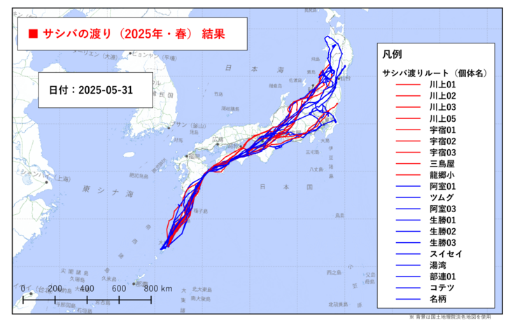 例えば移動にかかる日数もその一つです。2024年は最短で7日ほどで移動していましたが、2025年は4日という個体もいました。気候に大きく左右されていると思いますが、4日というのはかなり短い日数です。