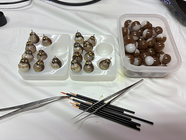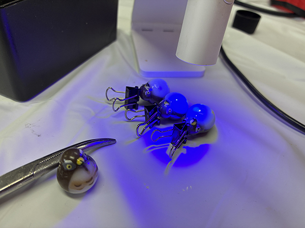 レジンという素材を使って作りますが、形を作るために紫外線を当て、1色塗るたびに紫外線を当てます。色を塗り重ねる作業を繰り返すので、けっこう時間がかかります。昨年は軽く見ていて大変なことになり休日出勤する始末(苦笑)。