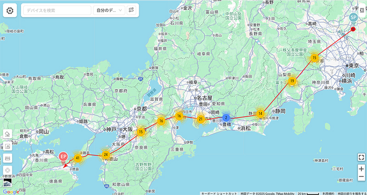 スイセイは琵琶湖沿いを少しだけ進みましたが、地図にすると分からない程度なので割愛します。頑張って進んでほしいですね。