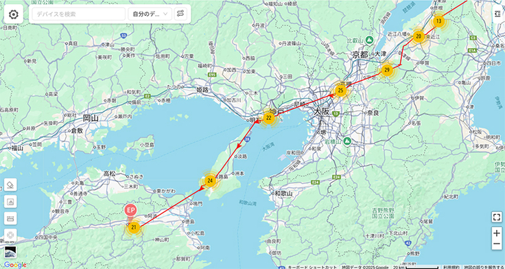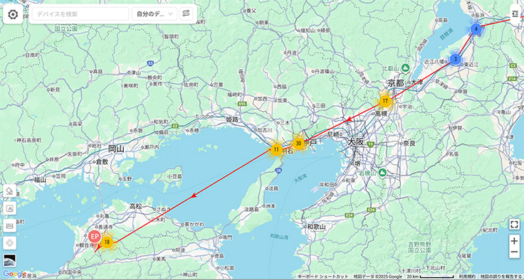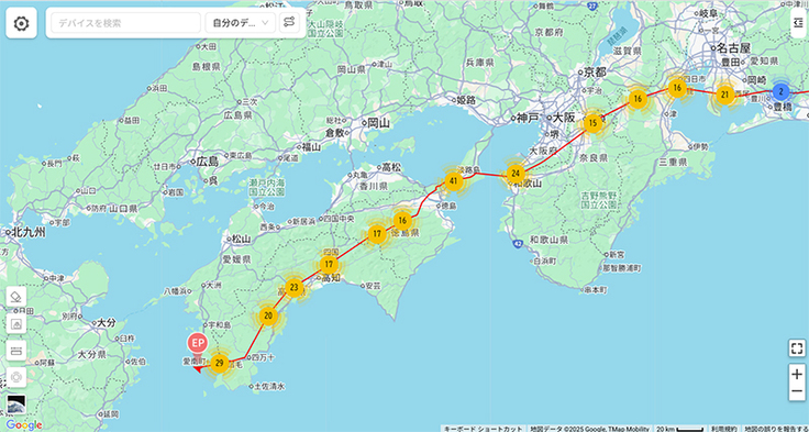 宇宿②も四国に入りました。コースは違えど宇宿①に近づいています。2羽とも川上①を追いつきそうな勢いです。